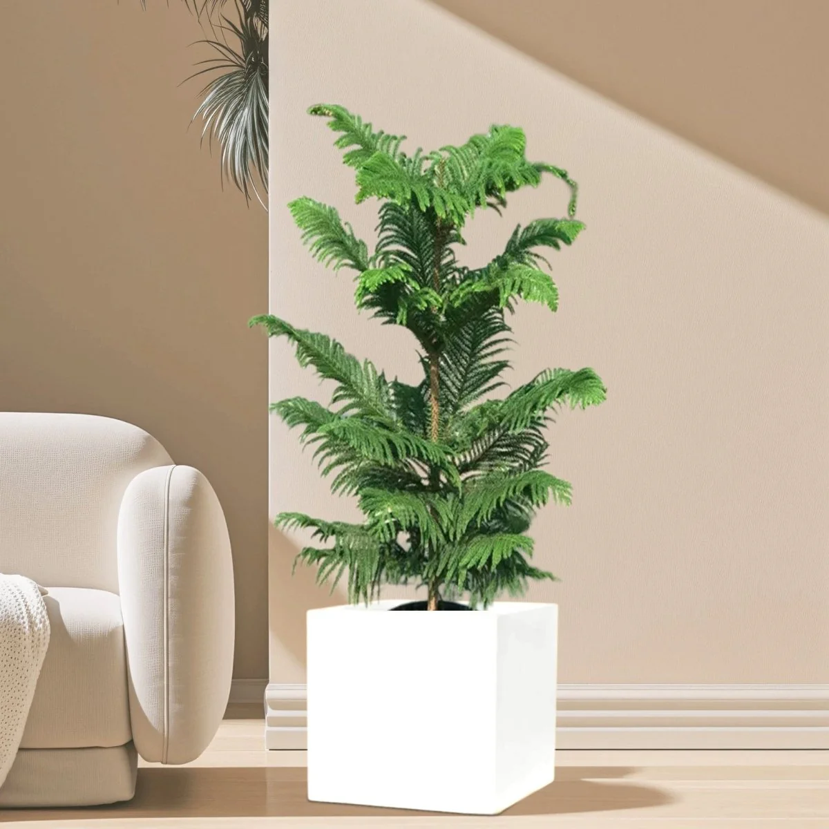stylish and elegant indoor conifer that combines tropical greenery with modern décor. Its soft, tiered foliage and symmetrical form make it a standout feature for living rooms, offices, or entryways.