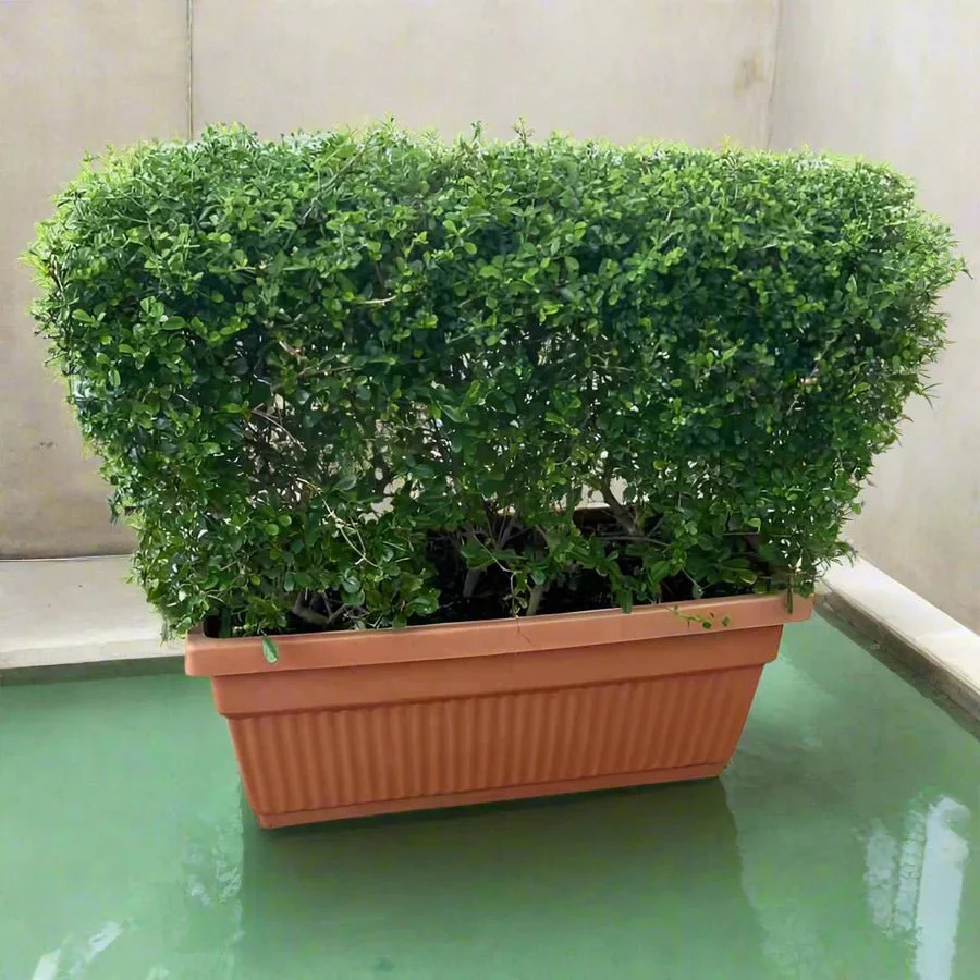 Ehretia microphylla, styled as a Buxus Wall (80x30x80cm), is a compact ornamental shrub with dense, glossy green foliage. Ideal for garden hedges, decorative walls, and formal landscaping.
