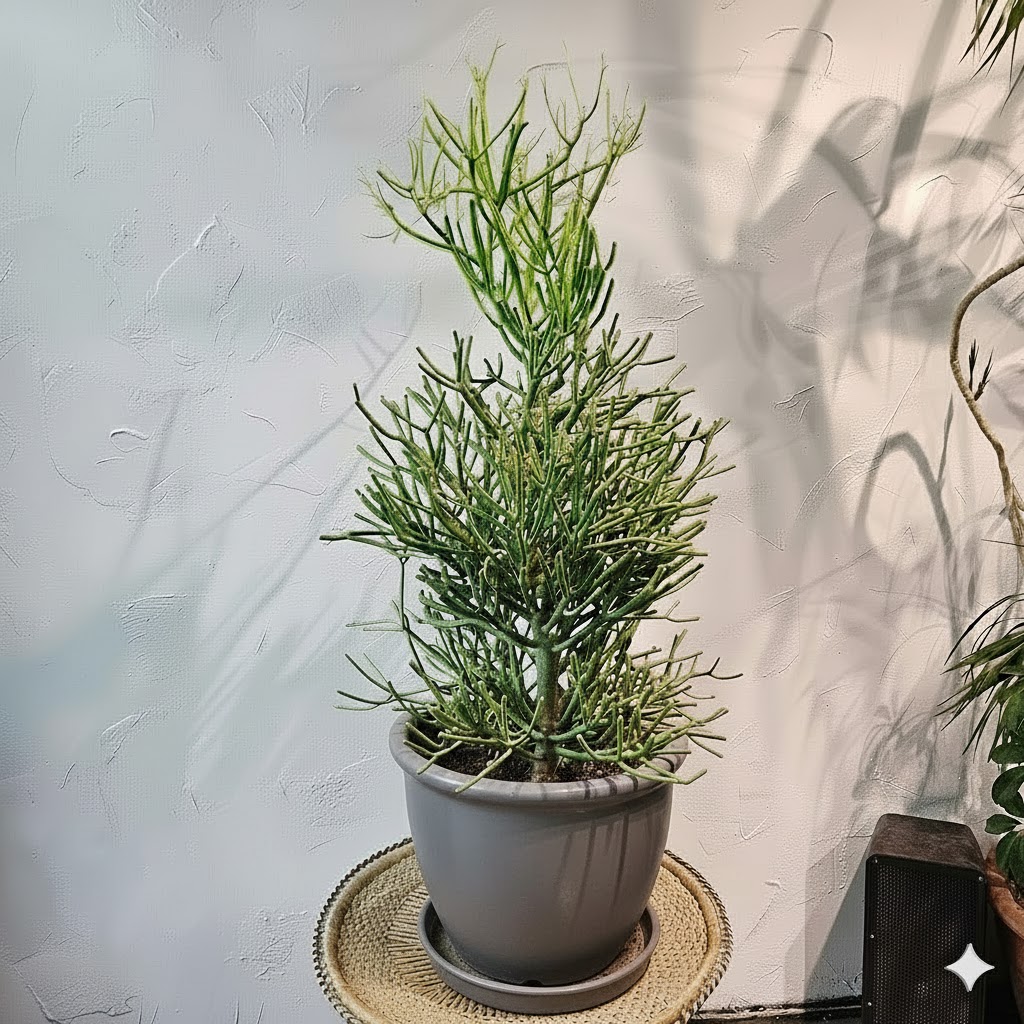 Euphorbia tirucalli, commonly known as Pencil Cactus, is a hardy succulent with slender, pencil-like green stems. Ideal for outdoor landscaping, rock gardens, and low-maintenance tropical décor.