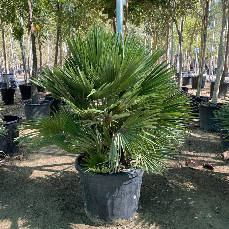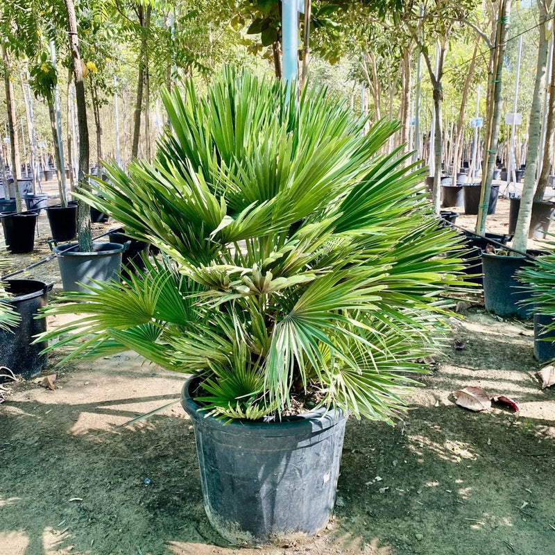 It features fan-shaped green leaves and a slender trunk, ideal for gardens, patios, containers, and tropical landscaping. This small-sized palm adds ornamental appeal, vertical structure, and exotic charm to outdoor spaces.